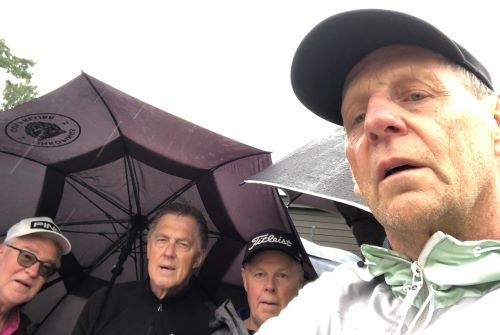 Fyra bestisar trotsade alla regnvarningar. Morgonen började utan både solsken och regn. Efter ett par hål kom lite dugg och snart fälldes paraplyerna upp ett efter ett. Det blev dock inget riktigt ihållande regn och när rundan avslutades var det bara lite dugg igen. Golfspelet var som vädret dvs. omväxlande, men till slut lyckades Sören hålla undan med knapp marginal.