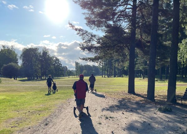 Utflykt i gröngräset! Sommarvärmen gjorde en liten paus från de temperaturer som varit gällande under veckans inledning, men det var nog mest skönt. Det blåste en aning och gjorde 1 klubba i mot eller medvind. Vi blev 6 spelare till start och formerades till 2 trebollar av tävlingsledningen som gjort ett strålande arbete. Till och med de digitala scorekortet stämde överens med bollen. Bra jobbat.