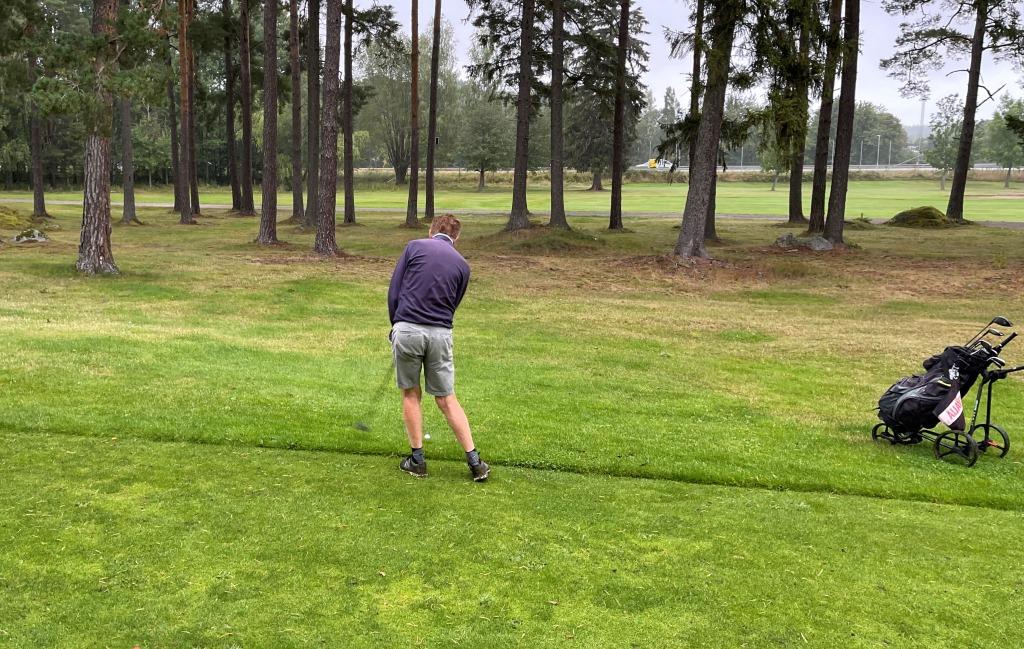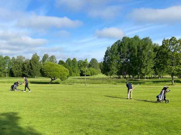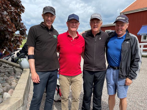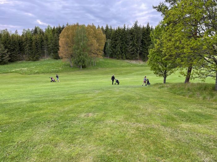 En solig morgon med många golfande barn i omgivningarna då det är ett golfläger igång under veckan. Vi blev sex startande som raskt delade upp sig i två bollar när Magnus kom springande och anslöt till den senare bollen. Dagens incident fick jag inte bevittna själv utan den stod herr Danielsson för. Han letade sin boll och kom springande tillbaka ut på nians green efter att bollen efter gjort sina första inspel. Senare skulle han hitta den i ena änden på sin putter. Som alla vet har han en gripklo där för att slippa hela resan ner till under marknivå. Mycket förståndigt! Minnet blir inte bättre med åldern?