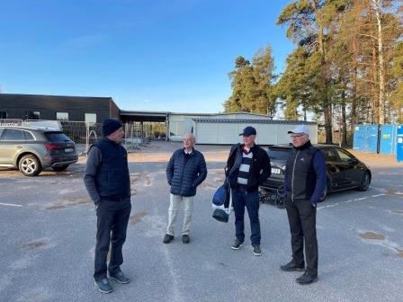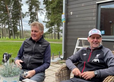 Ytterligare en trevlig morgon med några samlade golfspelare vid övningsgreen framför en byggarbetsplats i morgonljuset. Det blir säkert bra med bygget till slut och nästa vecka kommer vi tydligen att kunna köpa kaffe efter avslutad golfrunda. Det går ju inte nu och då försvinner ju en del av tjusningen. Våra träffar börjar likna syjuntor mer efter hand som fika-aktiviteten tar över den aktivitet som rubriceras. Men det är inget att klaga över och är nog ett naturligt nästa steg.