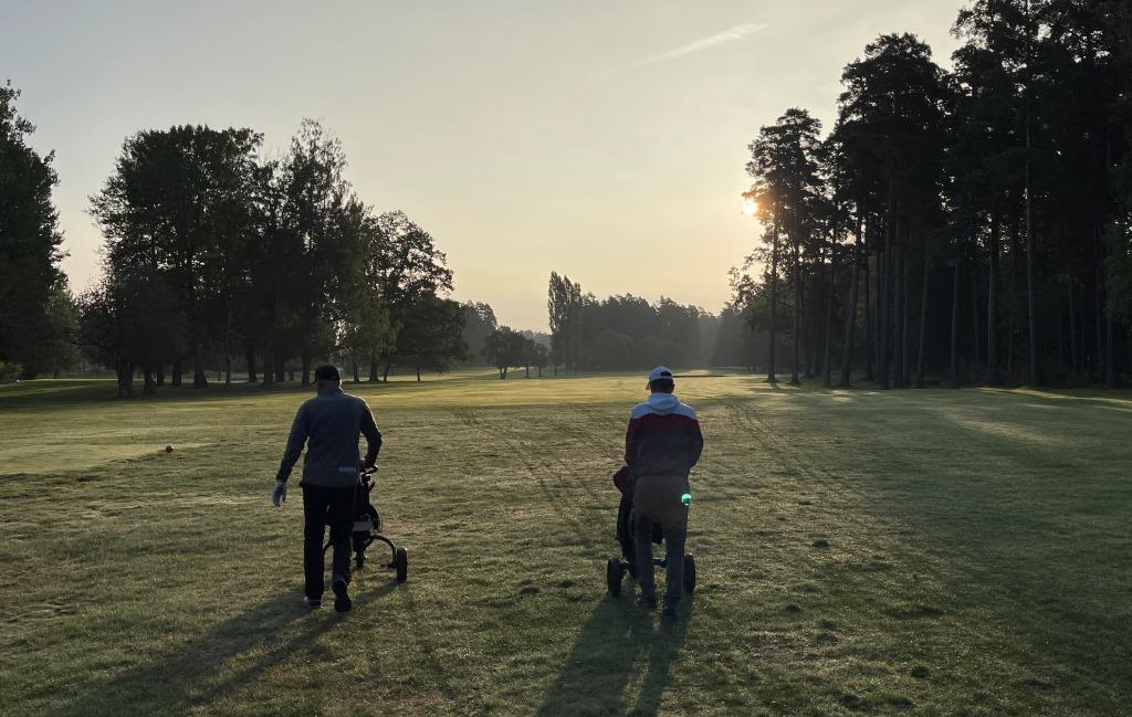 Det blev en trevlig morgonpromenad tillsammans med varandra och varsin boll. Inte så många på golfbanan övrigt. Bilder kommer när telefonen är inom räckhåll. Christer tog hem årets första seger och gör sig bekväm i vinnarsätet. Stort grattis!