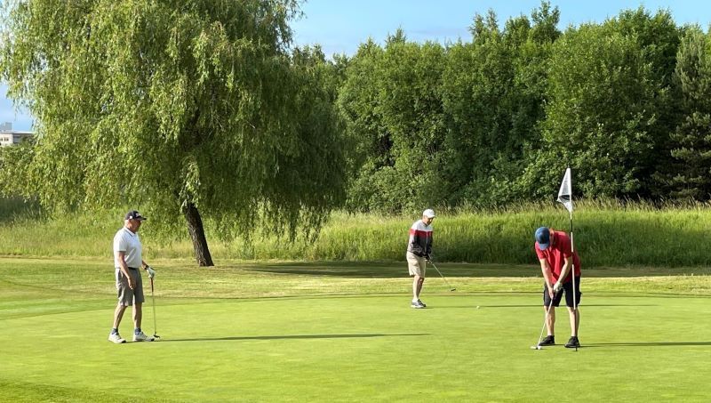 Lite tunnsått med medspelare under dagens första timmar. Några medlemmar meddelade sig tidige i vår mailtråd om att de befann sig på semester. Jag tolkar det som att de är på annan ort, annars borde väl semester föranleda ännu mer golfspel än vanligt? Vi blev fyra stycken som kom till start och det blev en trevlig runda i ett strålande väder. Spelet höll också en hög nivå och Rolf bad mig speciellt nämna hans birdie på treans hål. Årets birdie är nu i hamn och resten är att betrakta som bonus. Bäst totalt spel bjöd dock Staffan på som ramlade in med 21 pinnar. Stjärnorna är på gång!