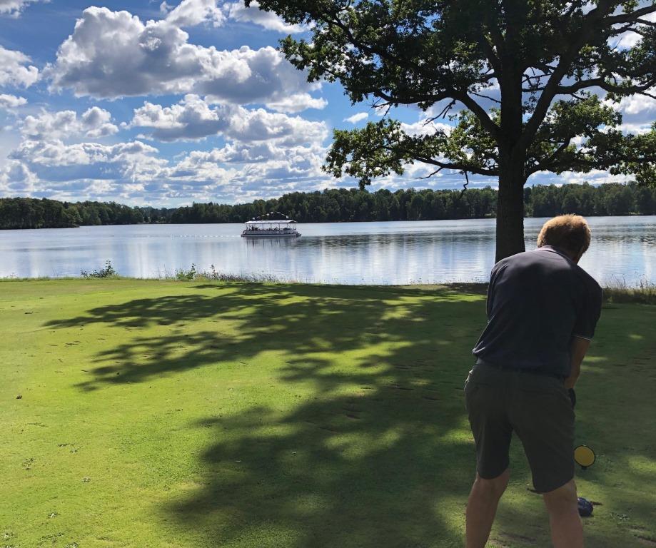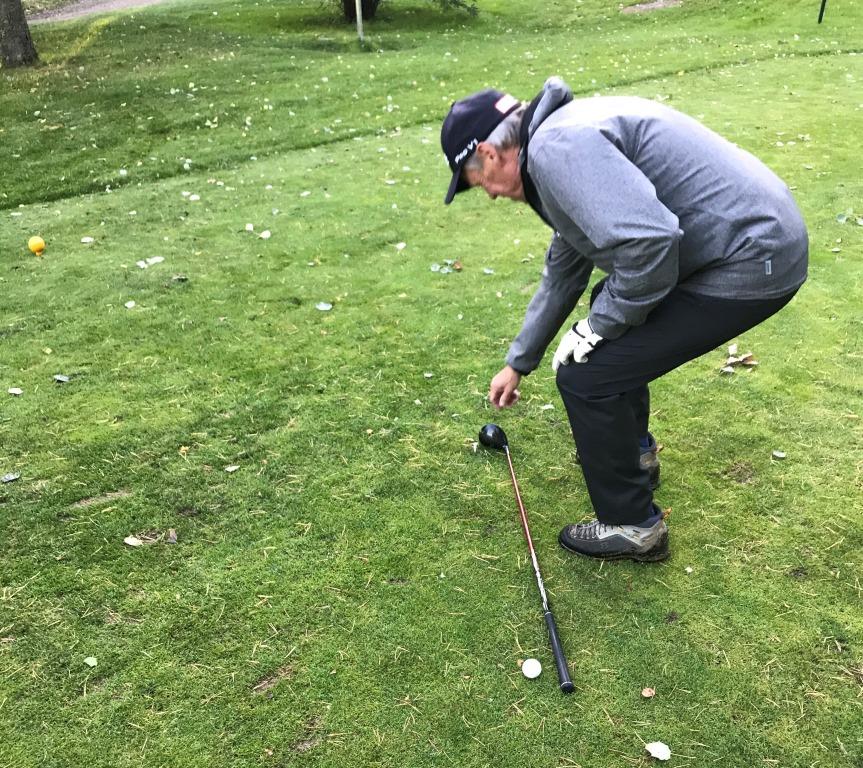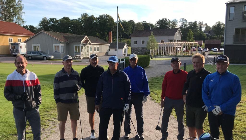 Regn? Det är väl första gången i år som det inte var “bra” väder i samband med att vi skulle gå ut på morgonen. Men det verkade inte hindra en skara på 7 spelare att dyka upp på morgonen. Kansliet hade meddelat att det blivit lite krock i bokningarna och bett oss komma iväg lite tidigare. Någon större trängsel blev det aldrig och det berodde väl antagligen på att den andra gruppen bestod av solskensspelare.
