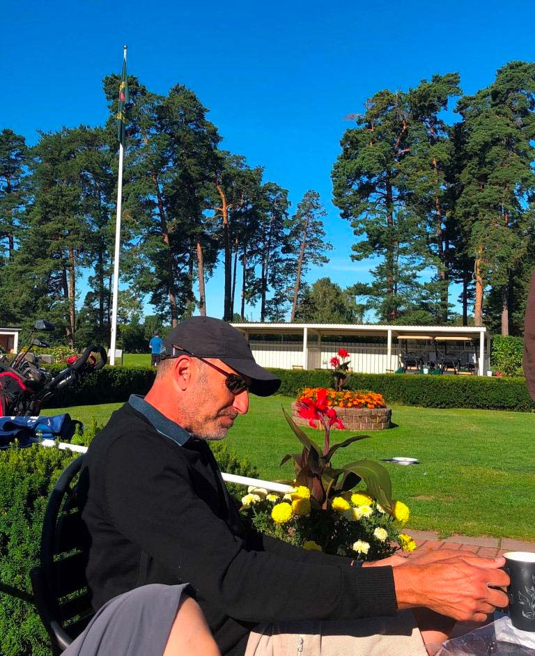 Vid fikat fick vi, kanske inte sällskap men ändå, närkontakt med kommunens jägare som satt i dörröppningen till restaurangen och jagade kråkor. Det blev ingen jaktlycka i vårt sällskap. Jag gissar att vi skrämde bort dem. Vi fick dock sällskap av Janne1 som ämnade spela sig i form inför KM. Han hälsar. Nästa vecka blir det spel som vanligt och vi hoppas på lika bra väder. Njut av de sista semesterveckorna och svinga lugnt till dess!