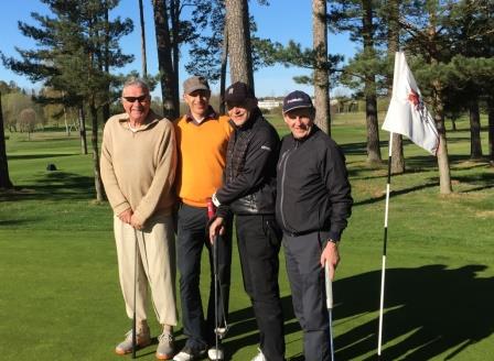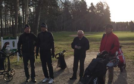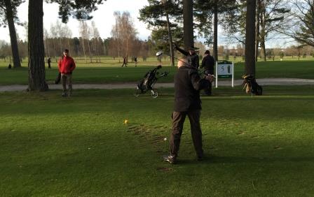 Han fick trots detta sällskap i solen, kylan och fåglarnas o-ljud av fyra kamrater. Särskilt roligt var det att se Anders på plats med ett nyrenoverat hjärta. (De andra närvarande ursäktar säkert detta infall av favoriserande skriveri?) Anders deltog inte i det långa spelet men spelade lika bra som vanligt när vi närmade oss green. Bra spel kan man kanske säga att det blev ibland. Förvånansvärt bra med tanke på förberedelserna. Resultatet blev jämnt såtillvida att vi var 3 personer med 16 som resultat. Resultatet blev däremot väldigt ojämnt när det gäller att få samma utdelning på varje hål. Det var det ingen som kom i närheten av.