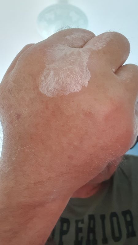 Gille gick även han segrande ur en närkamp. En geting blev lite närgången vid 5:an och fick sig en smäll. Tyvärr resulterade det även med ett stick i högerhanden som förstörde delar av fortsättningen. Hans hand svullnade upp rejält och såg mer ut som en boxningshandske när vi kom fram till fikat. Vi hoppas det gick lagt sig till nästa vecka. Träna mycket och svinga lugnt!