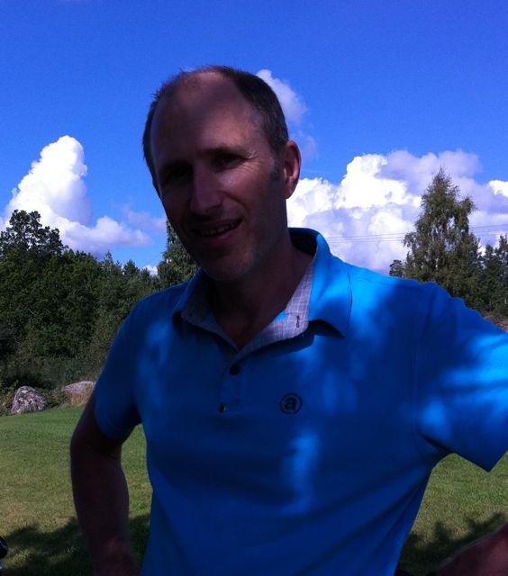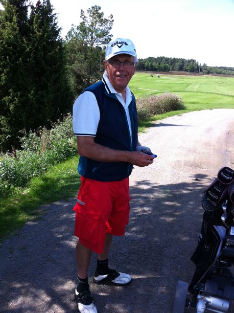 Efter inskaffande av golfbil och omhändertagande av smörgåsar beträdde vi banan i två fyrbollar och om man får tro medspelare så använde sig den första bollen av Janne 2 som blindhund. Han sprang sig svettig mellan alla bollar som han var tvungen att hitta och skulle dessutom tillbaka till utslagsplatsen för att slå om sina egna. Vi blev stumma av beundran, nej förresten, vi gav många glada tillrop och stämningen var på topp i båda bollarna.