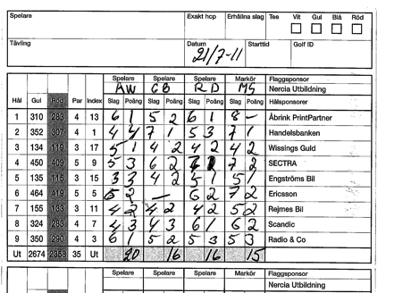Även under semestertider finns det spelare som är villiga att gå upp tidigt på morgonen. En som vaknade på rätt sida denna morgon var Anders, som till sist fick utdelning på en runda med många poäng. Grattis Anders! Hoppas det går lika bra nästa vecka då vi kanske blir några fler. I brist på aktuella bilder av segraren kommer här en bild på deras scorekort.