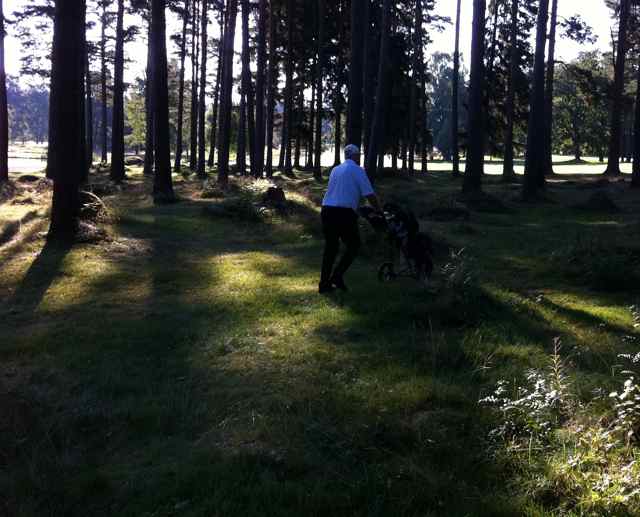 En något försenad betraktelse över den senaste omgången kommer till sist på plats. Det känns kul att det finns trogna läsare. Den gångna torsdagen var i alla fall väldigt fin kommer jag ihåg. Många muntra miner. Mest över det faktum att vi spelade på sista nio och alla i min boll, framför allt Roffan, gillade det skarpt. Sedan spelade vi kanske inte så bra, men det gjorde inte så mycket. Spelet blev inte bättre efter att någon snott en av mina klubbor. Det lönade sig inte mycket för vederbörande att protestera eftersom beviset stod i bagen och lyste i ett tydligt annorlunda blänk bland alla andra.