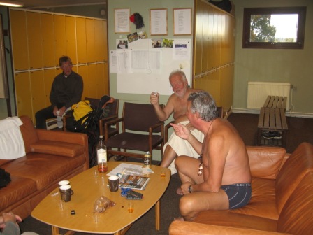 Sista dagen med gänget och solen fortsätter hålla sin sjyssta stil med att lysa över våra aktiviteter. 9 glada gubbar kom till start i årets sista duell. Rolf blev tvungen att avstå till förmån för en herre från Tyskland. Hur han gör sina prioriteringar kan vara lite svårt för oss övriga att förstå?
