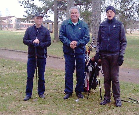 Mannen i mitten förefaller vara extra glad. Kan det vara för att han vet något som de andra inte vet? Eller är det för att utslagsplatsen är framflyttad? Eller är bilden tagen efter att rundan är färdigspelad? Min gissning är att han ler med hela kroppen för att golfen äntligen igång efter en lång vinter. Sören får fungera som bevis för att vinterträning lönar sig. Årets första veckovinnare på smått otroliga 29 pinnar. Tur för oss andra att det var på vintergreener! Hur många slags sänkning vore det annars? Välkommen ned som singelspelare?